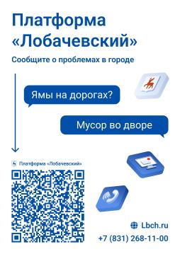 Введена в эксплуатацию новая версия платформы «Лобачевский», предназначенная для подачи жителями Нижнего Новгорода заявок по интересующим их проблемным вопросам.